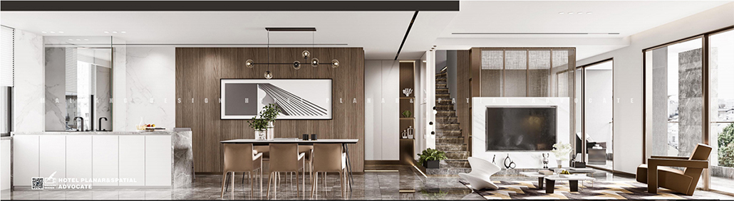 It's only two or three steps away from the living room to the kitchen. The chairs in log colors are matched with artistic modeling chandeliers. The combination of modern characteristics and traditional classical aesthetic feeling gives people a strong affinity. The feeling of comfort and returning to nature arises spontaneously.