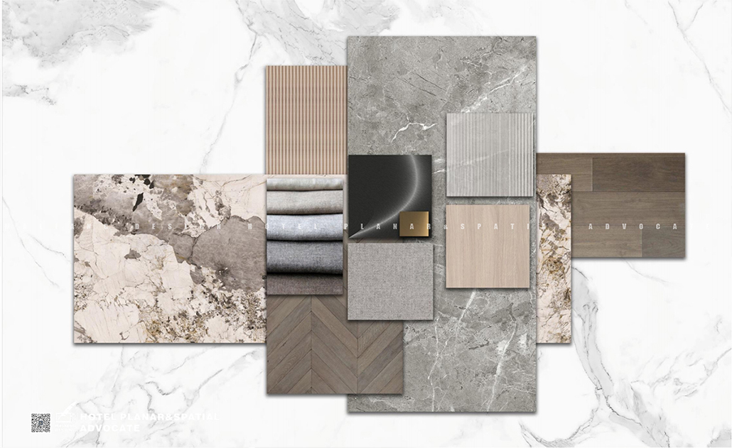 從門口開始,至過道玄關、客廳、茶室、餐廳、以及廚房,統一鋪滿維納斯灰瓷磚,整個空間以中色調為基礎,通過沙發、椅子、餐桌、茶幾等多種元素及其色彩搭配的使用,豐富了整個空間的高級氣質與風格。