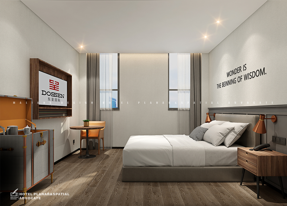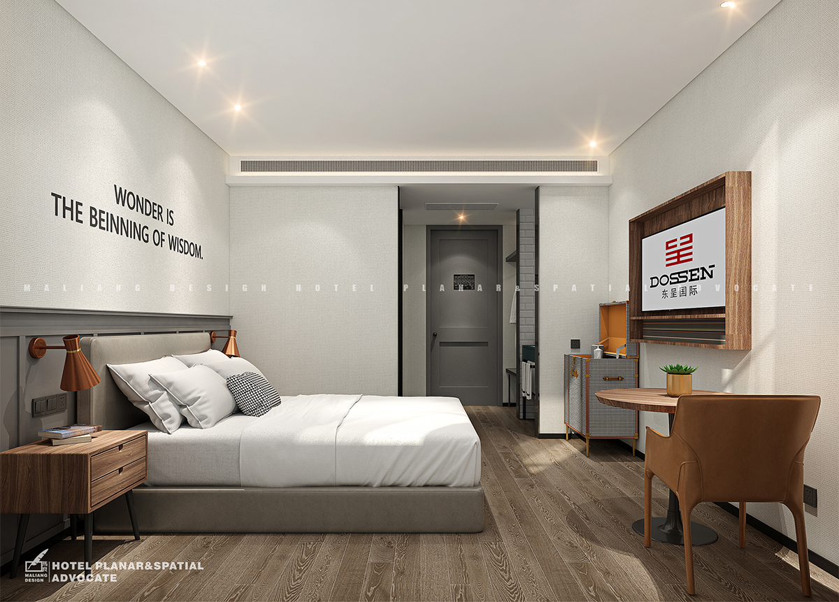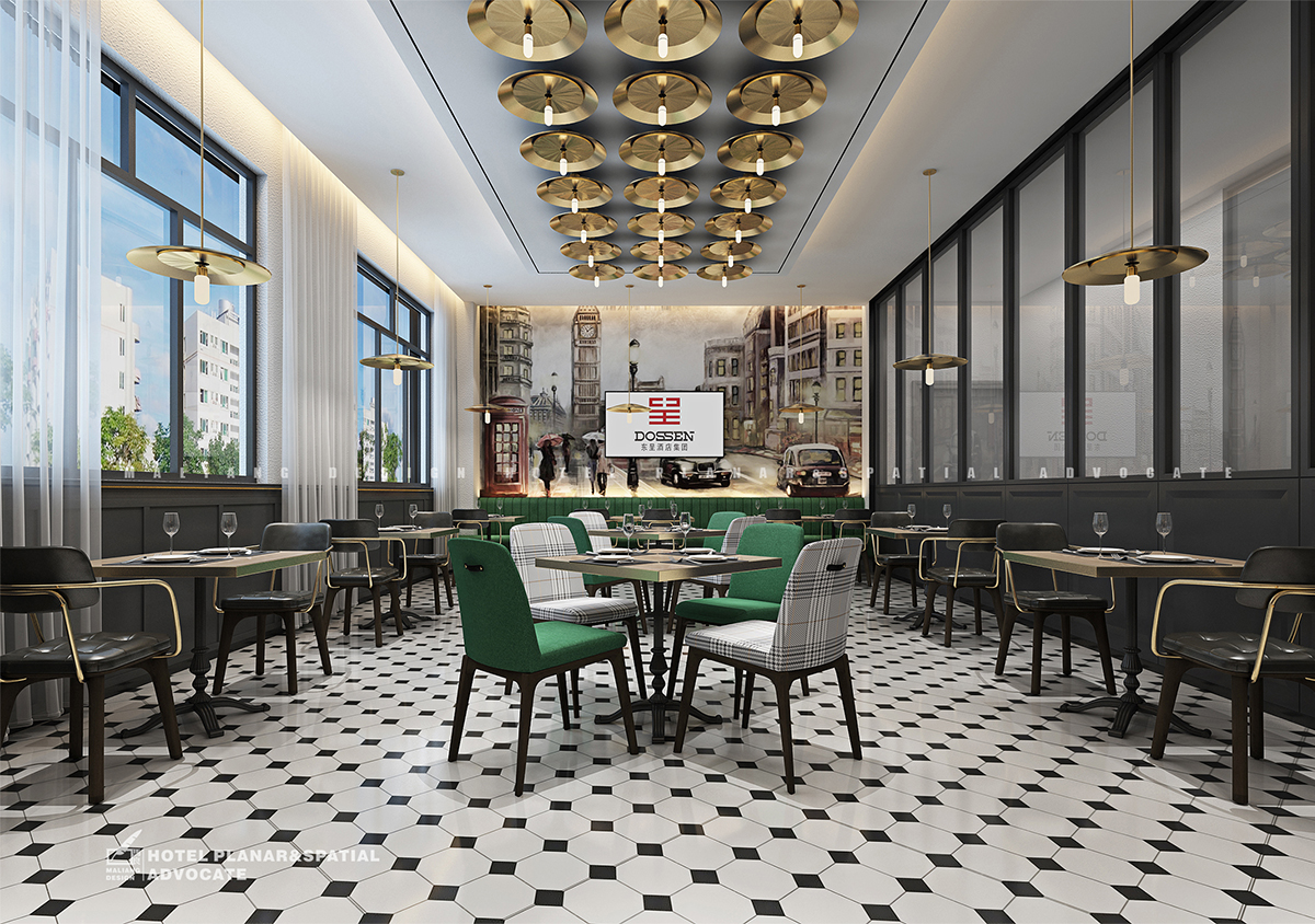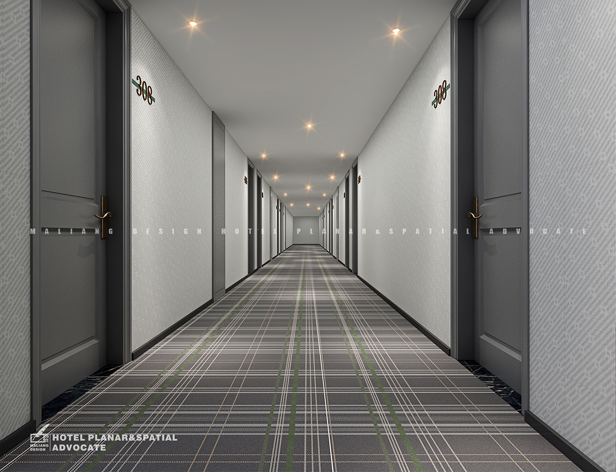 The laying of elevator hall and guest room elevator room is the same as that of restaurant, but the difference is that the aesthetic pattern is added to the wall. This pattern will extend to the hallways of guest rooms and the walls of all guest rooms.