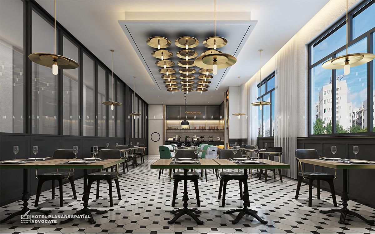 The whole modern restaurant is covered with black and white tiles. Compared with the lighting in the lobby, it looks more "gorgeous". It's a good choice to eat near the window and have a look at the street view.